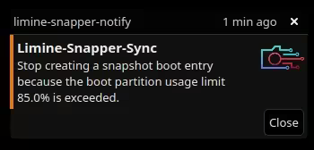 arrow-up11arrow-down1external-linkCachyOS boot partition usage limit has exceeded (limine-snapper-notify)plus-squarelemmy.zipComexs@lemmy.zipEnglish · edit-228 days agomessage-square0linkfedilink