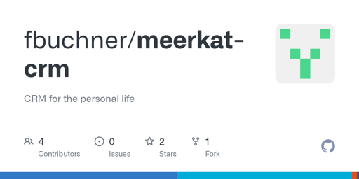 Demo and links: You can try a demo here: https://meerkat-crm-demo.fly.dev/ (login with username demo and password test_12345). The demo starts on demand so it might take a couple seconds to load. Data is shared but resets as soon as the demo goes idle. Repository: https://github.com/fbuchner/meerkat-crm (the README has a screengrab to give you an impression)
